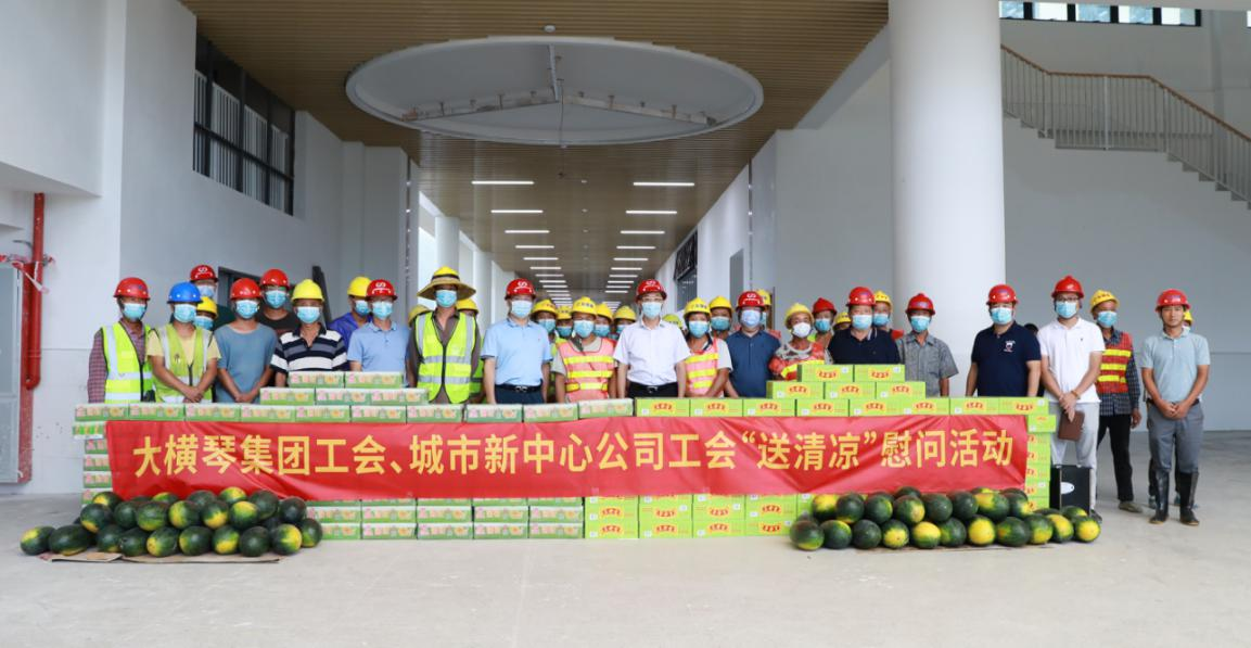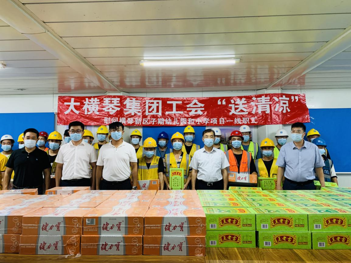 為進一步加強高溫作業(yè)職工勞動保護工作,關愛堅守在項目一線的建設者,2021年7月,大橫琴集團黨委書記、工會主席田偉帶隊分別赴科學城(二期)標段一、標段二項目、橫琴醫(yī)院項目、橫琴新區(qū)子期幼兒園和小學及保稅一小工程項目開展夏日送清涼慰問活動。