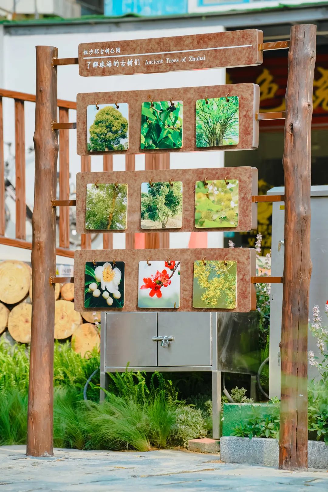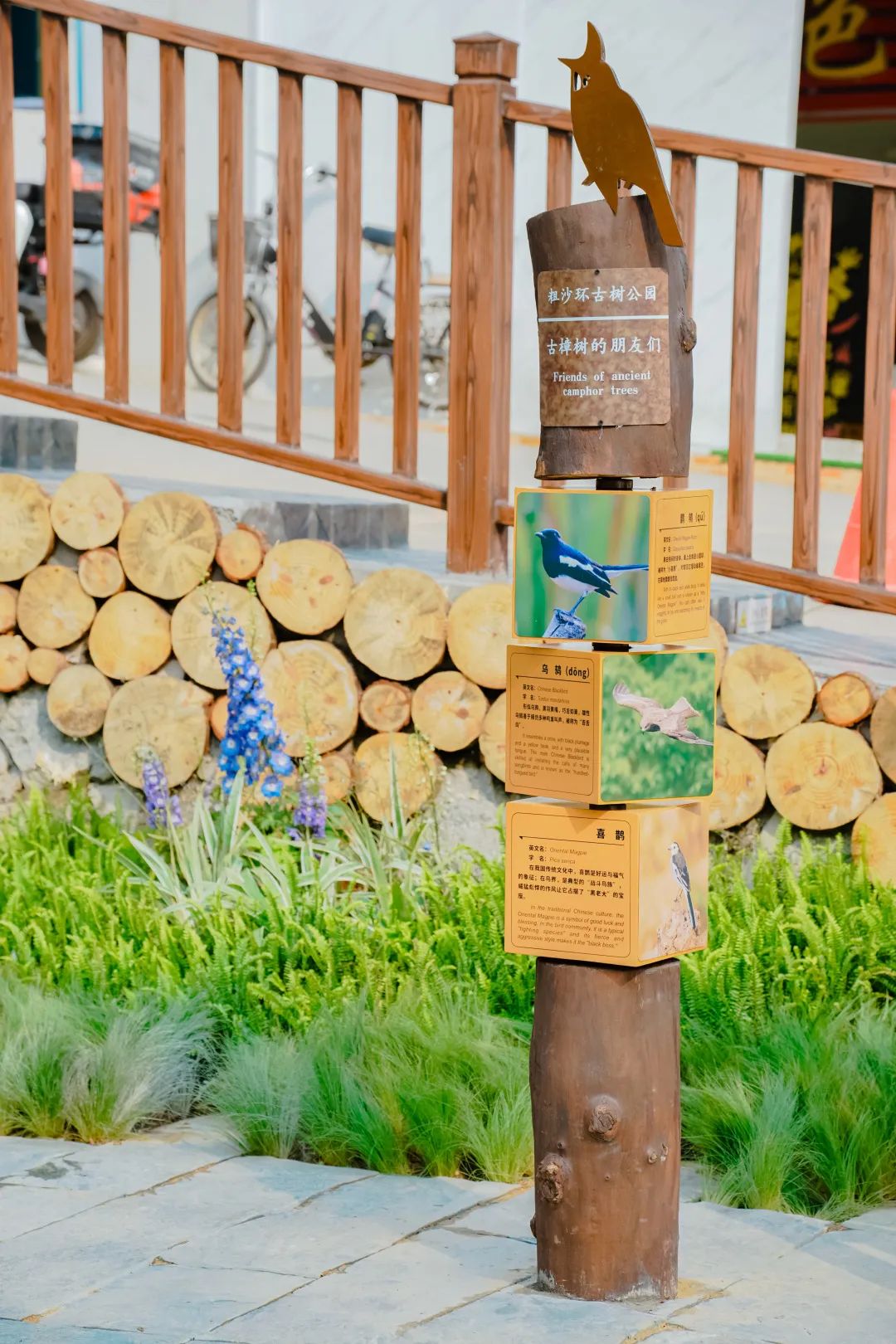 為響應(yīng)黨的二十大關(guān)于生態(tài)文明建設(shè)的戰(zhàn)略部署,與國(guó)家林業(yè)和草原局對(duì)加強(qiáng)自然教育的建議,粗沙環(huán)古樹公園在配套設(shè)施的設(shè)計(jì)上融入了許多自然科普的內(nèi)容。公園內(nèi)多處設(shè)置宣教標(biāo)識(shí)、互動(dòng)掛牌等,引導(dǎo)游人親近和了解大自然。