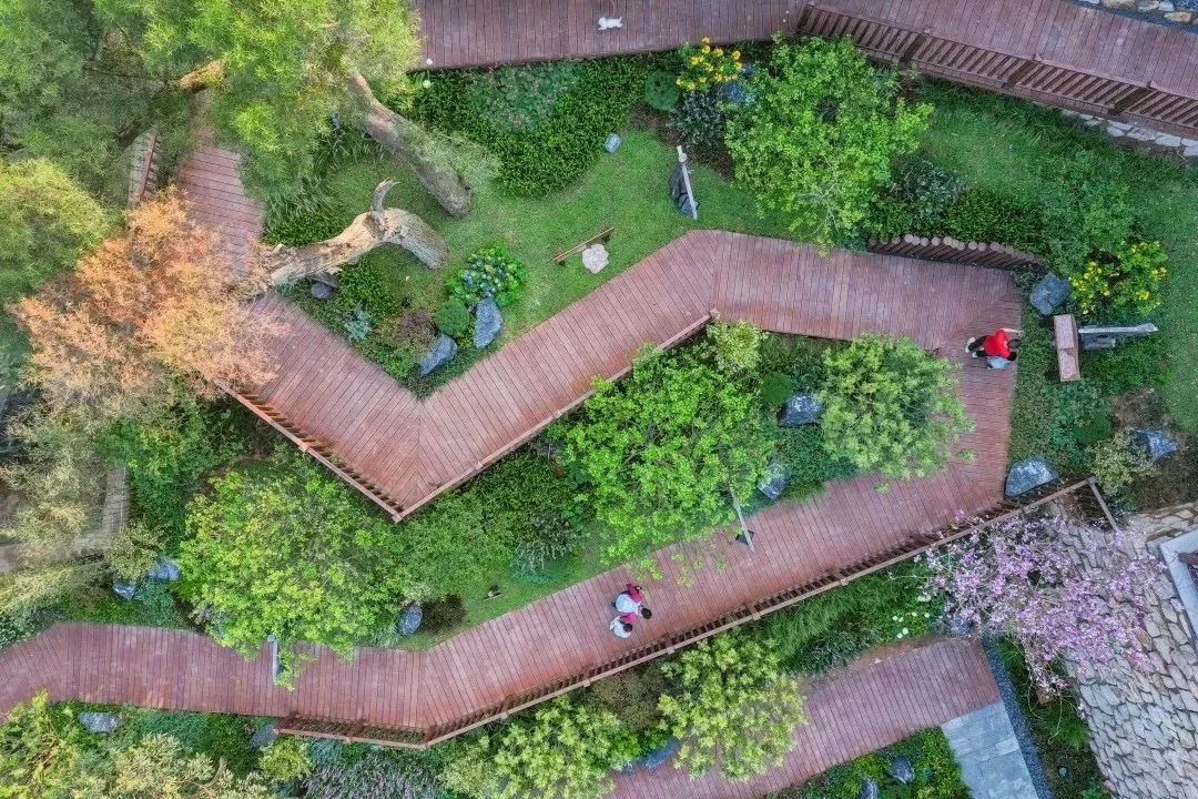 而觀景亭的造型與支撐結(jié)構(gòu)更是參照古樟樹枝杈形態(tài),亭內(nèi)設(shè)有科普講解牌與坐凳,與四周鳥語花香的自然環(huán)境構(gòu)成了天然的林間課堂,可供游人休憩、供自然愛好者交流學(xué)習(xí)。