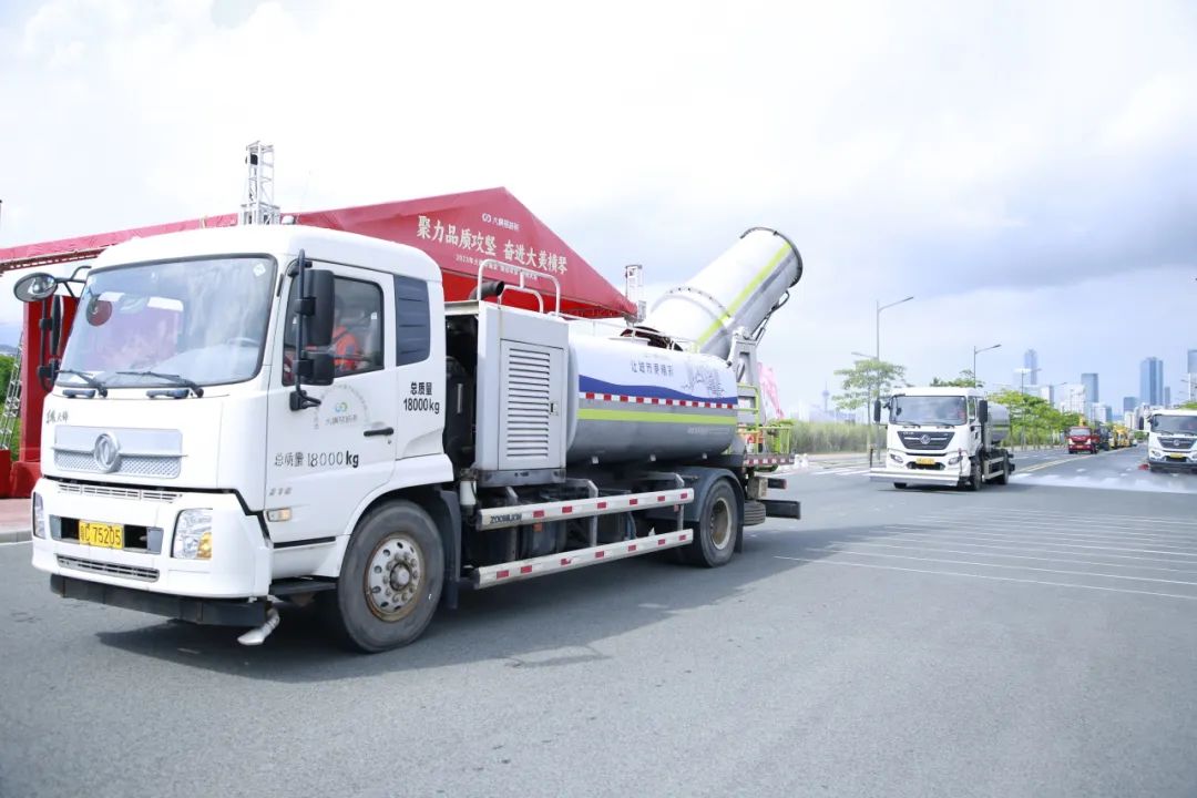 戰(zhàn)旗飄揚,誓言錚錚,180余名城市服務(wù)工作者在橫琴粵澳深度合作區(qū)愛琴路集結(jié)會師,35種100余臺機械化裝備輪番上陣顯身手,一場斗志昂揚的誓師大會擂響下半年沖刺戰(zhàn)鼓。