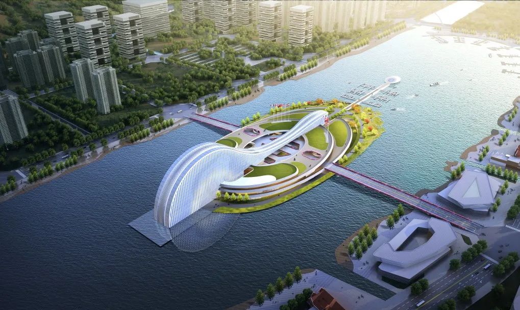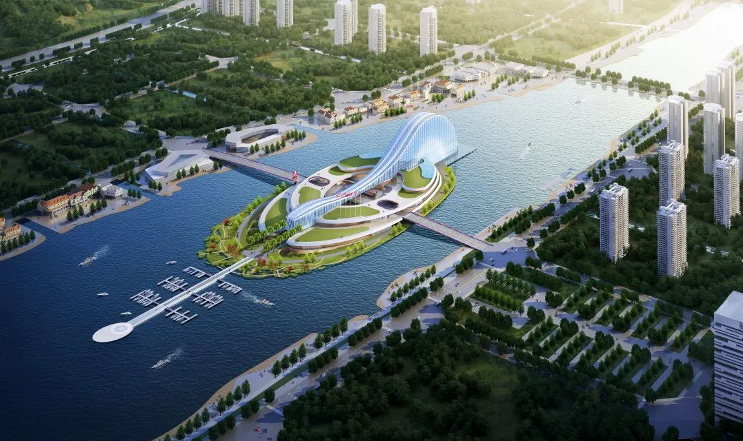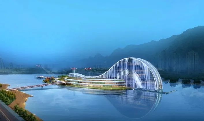 項(xiàng)目建筑設(shè)計(jì)以“映·韻”為設(shè)計(jì)理念,從橫琴地名中獲得創(chuàng)作源泉,汲取琵琶、古琴元素之靈感,將古琴的基本曲率抽象取形,形成建筑基本的曲線形體。從效果圖上看,橫琴天沐琴臺(tái)外觀建筑似一把橫臥天沐河上的琵琶,在設(shè)計(jì)上采用了大跨度的超高空間、連續(xù)鋼架屋頂結(jié)構(gòu)以及巨大玻璃幕墻,以打造靈動(dòng)的建筑曲線,形成連續(xù)開放的室外公共空間和活力街區(qū)。