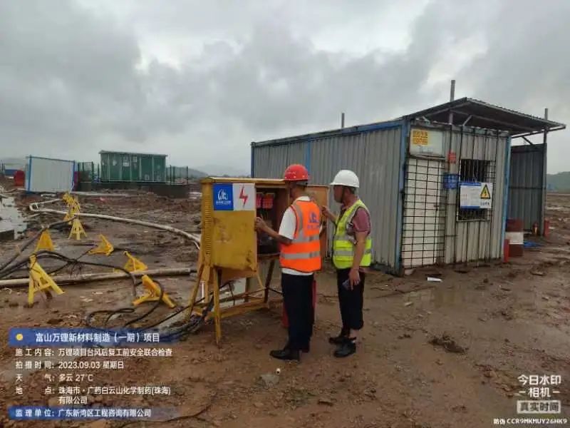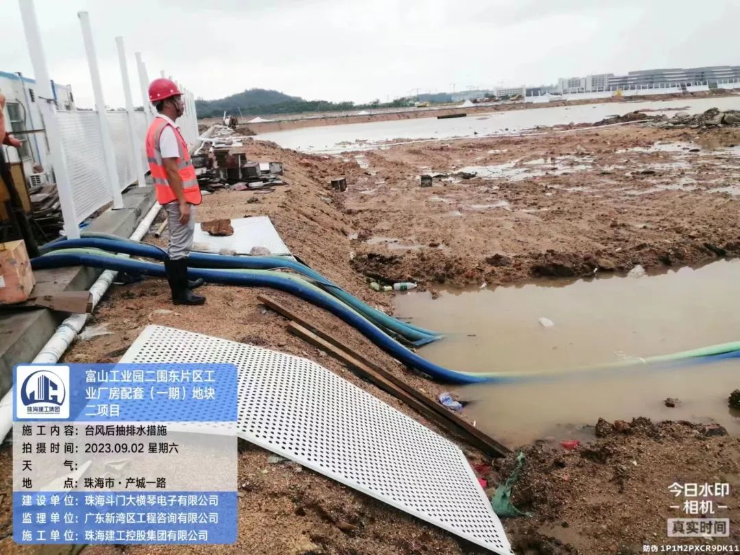 在斗門大橫琴5.0產(chǎn)業(yè)新空間萬鋰新材料(一期)項(xiàng)目現(xiàn)場,開展了臺風(fēng)后復(fù)工復(fù)產(chǎn)安全大檢查,現(xiàn)場組織排水、圍擋修復(fù)各項(xiàng)工作。
