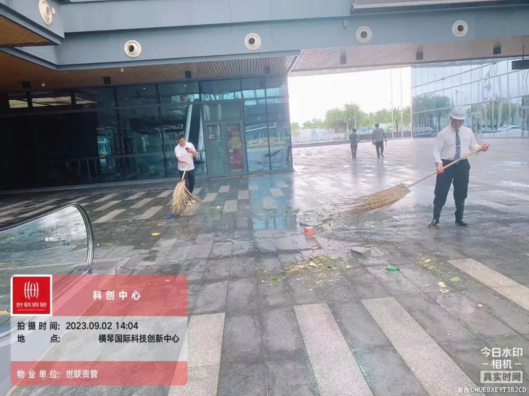 第一時(shí)間對園區(qū)環(huán)境進(jìn)行清障復(fù)原,完成園區(qū)所有枯樹樹葉清理、樹木扶正,樹撐檢查加固;完成園區(qū)公共垃圾桶、煙灰柱、地毯復(fù)原工作;檢查受災(zāi)情況并進(jìn)行修復(fù),檢查設(shè)備機(jī)房、電梯是否正常運(yùn)行等,確保企業(yè)可正常辦公。其中橫琴國際科創(chuàng)中心園區(qū)應(yīng)急避難場所本次接待人員約1500人次,產(chǎn)生生活垃圾約3噸,人員撤離后已及時(shí)清理。