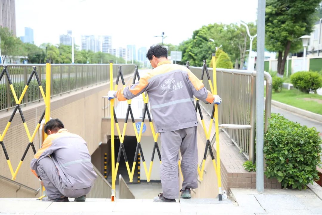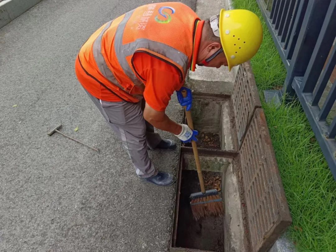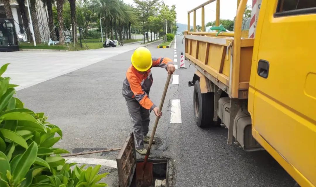 大橫琴城資重點落實做好易水浸點的日常巡查管護,加強清掃保潔工作。組織專人對雨水篦子口、排水口、引水溝垃圾等進行清理,保障排水設施高效、安全運行。同時,利用水馬、雪糕筒等,視情況對易水浸路段進行封閉,提醒居民繞行,并聯(lián)動相關單位共同進行排水處置。