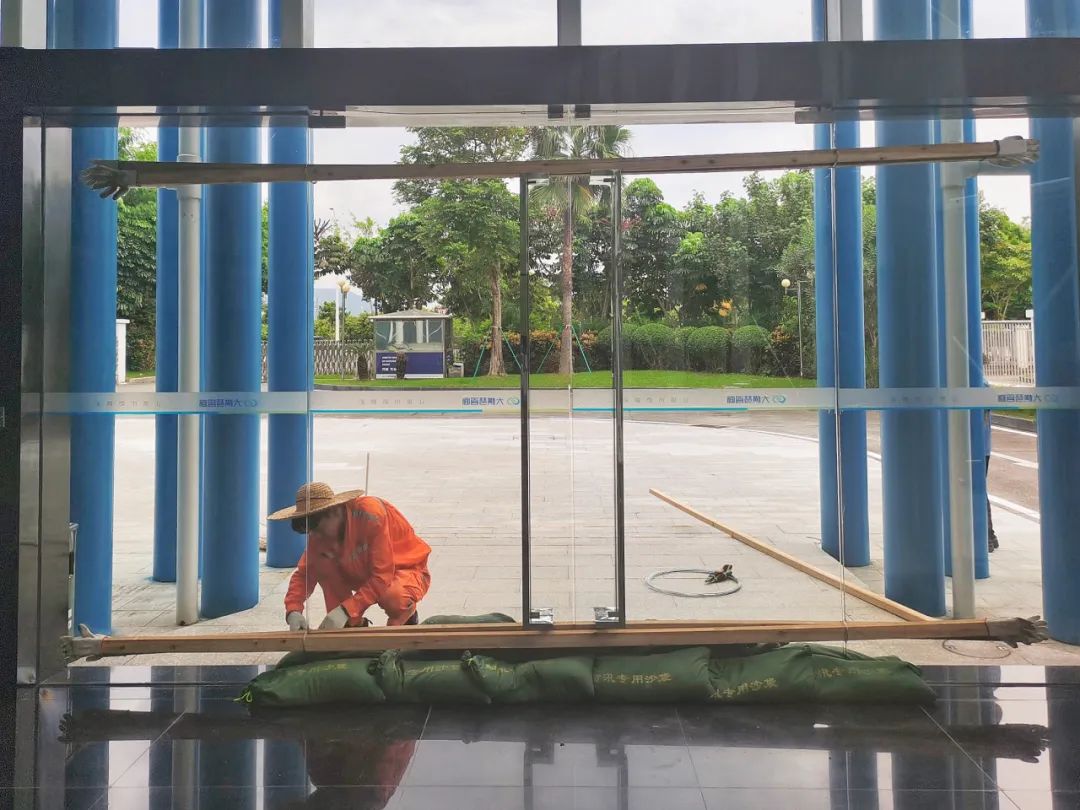 放置防汛沙袋、加固門窗