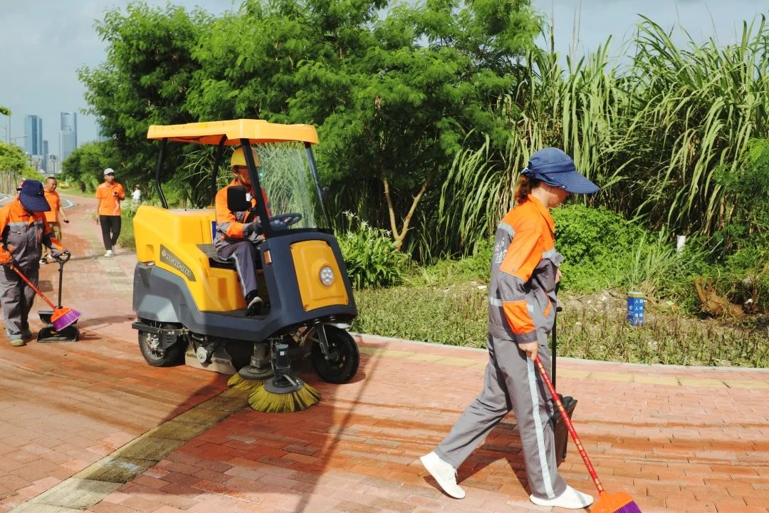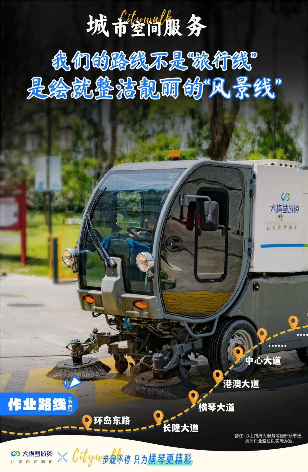 在合作區(qū)不同的道路街巷,都遍布著環(huán)衛(wèi)工作者的Citywalk路線,在市政道路上,他們熟練地駕駛著沖洗車、機掃車、高壓清洗車等作業(yè)車輛,對城市路面進行灑水降塵、清掃沖洗,在人行道、在海堤、在公交候車亭、在公廁里,在社區(qū)內(nèi)街小巷、在村居內(nèi)房前屋后,他們循環(huán)保潔的身影也隨處可見,“沖、掃、吹、清、運、巡”,一套環(huán)衛(wèi)作業(yè)組合拳,讓合作區(qū)容光煥發(fā)。