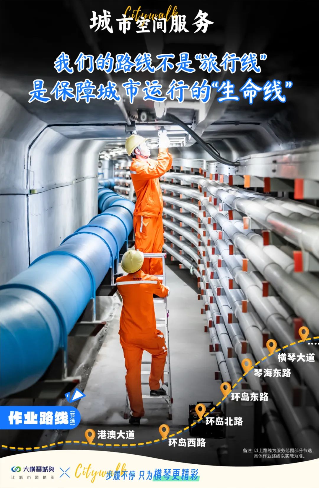 在合作區(qū)豐饒的土地之下,全長33.4公里,集合了水、電、通信等管線的地下綜合管廊,形成了橫琴名副其實的“地下生命線”,而這也是“地下工作者”的日常Citywalk路線,每天巡查排水、消防、照明、通風、供配電等系統(tǒng)設(shè)施,采取標準化、智能化管理,確保城市“地下血脈”暢通運行
