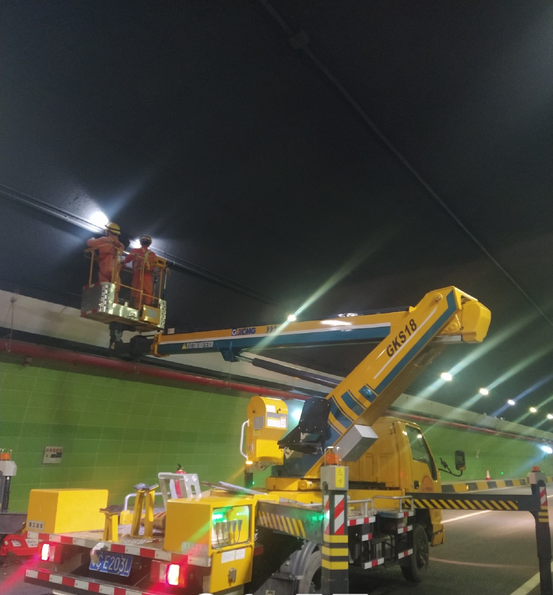 利用登高作業(yè)車到達隧道頂部進行清潔維保