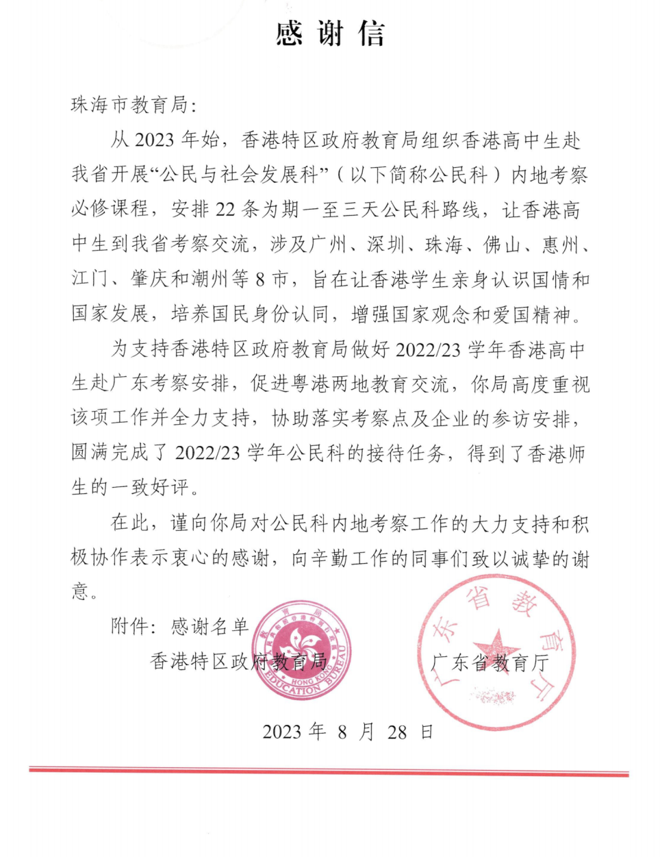 助力粵港教育交流,支持兩地智趣研學(xué)。香港特區(qū)政府教育局組織香港高中生赴我省開(kāi)展“公民與社會(huì)發(fā)展科”內(nèi)地考察必修課程,大橫琴管廊積極配合相關(guān)工作的開(kāi)展,為香港高中生細(xì)致介紹橫琴綜合管廊這一保障城市運(yùn)行的“地下生命線”,獲“香港特區(qū)政府教育局、廣東省教育廳”致信感謝,被認(rèn)定為“工作特別突出單位”。