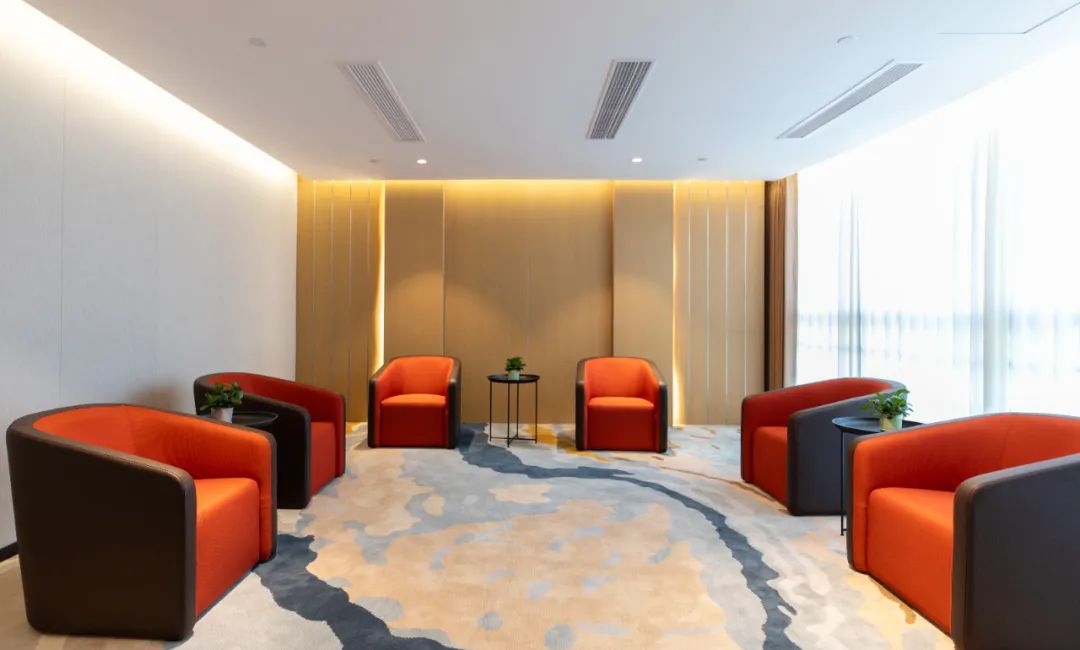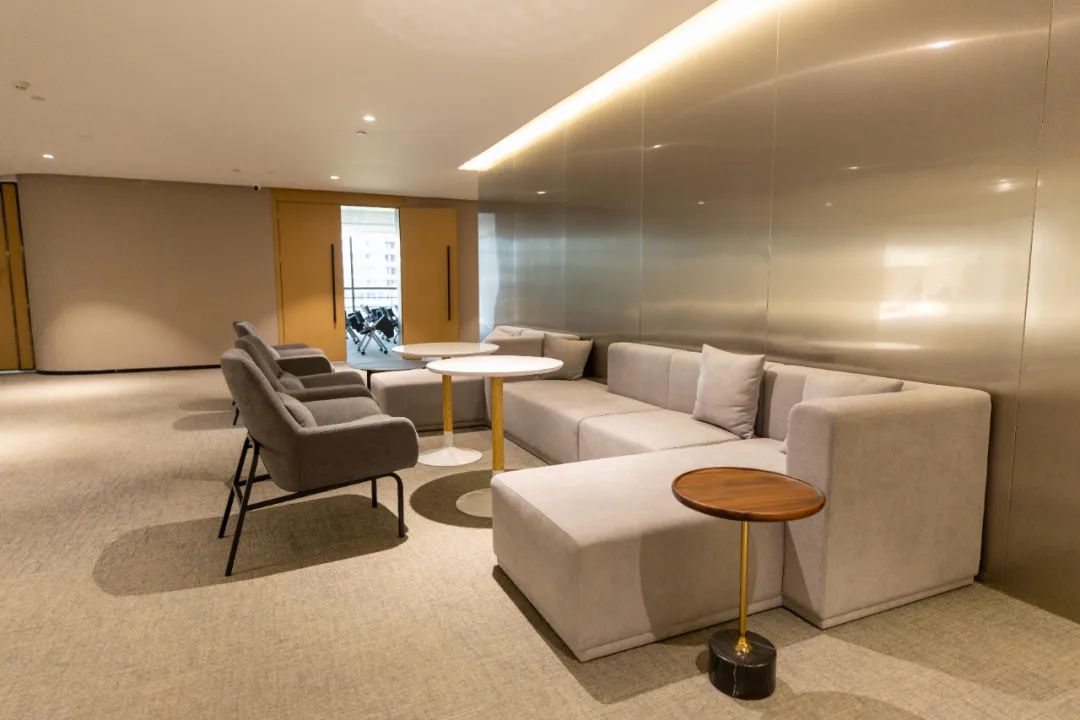 沒有鮮艷的色調(diào),摒棄傳統(tǒng)辦公空間所青睞的金碧輝煌風(fēng),改用棕色座椅搭配著灰白色地毯,咖色沙發(fā)搭配棕紅色背景墻,慢慢過渡的色彩讓整個空間更加柔和、干凈和高雅,無論是辦公還是社交,都能給人提供一個有溫度的空間,讓科創(chuàng)er的工作和生活連結(jié)地更加融洽。