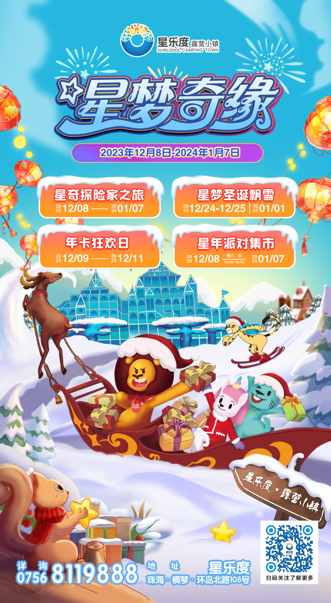 作為橫琴乃至大灣區(qū)知名休閑旅游度假目的地,由珠海大橫琴星樂度文旅發(fā)展有限公司(以下簡稱大橫琴星文旅公司)運營的橫琴星樂度·露營小鎮(zhèn)推出了“星夢奇緣”主題迎春活動,元旦假日期間將推出夢幻飄雪、歡樂小丑、跨年LIVE、跨年演藝等豐富環(huán)節(jié)。