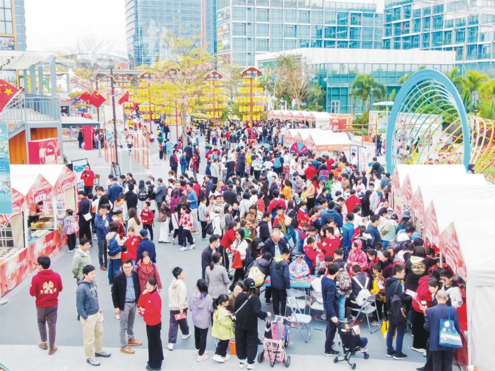 趣味遊園遊戲活動(dòng)由大橫琴集團(tuán)旗下的13家二級(jí)企業(yè)承辦,以「一企一特色、一家一品牌」為主調(diào),既有猜燈謎、剪窗花等民俗活動(dòng),也有數(shù)字華容道、幸運(yùn)射箭等現(xiàn)代遊戲,煙火氣十足,又不乏文化味,為遊客帶來(lái)了一場(chǎng)年味十足的節(jié)日盛宴。活動(dòng)現(xiàn)場(chǎng)還引入了澳門(mén)美食攤位,不少市民及遊客駐足攤位前品嚐地道澳門(mén)美食。