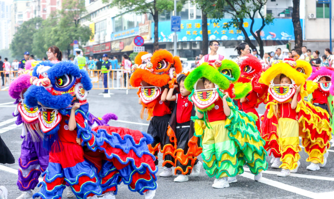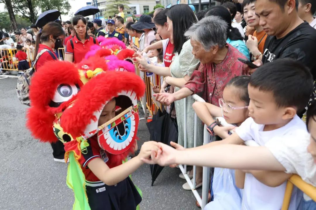 《群獅共舞》《輪滑龍》《賽龍奪錦》《幼兒萌獅》等斗門(mén)傳統(tǒng)民俗文化,以及管樂(lè)團(tuán)合奏《迎賓曲》《金龍奪標(biāo)》、舞蹈《龍騰九洲》、川劇變臉等富有濃厚非遺特色的文體節(jié)目在岸上的舞臺(tái)穿插上演。