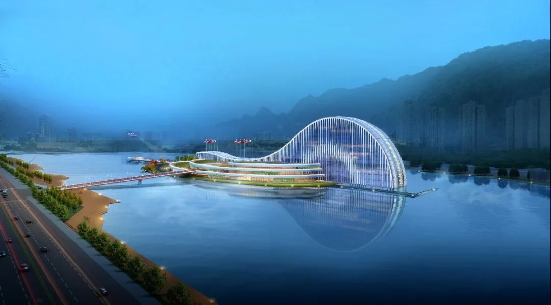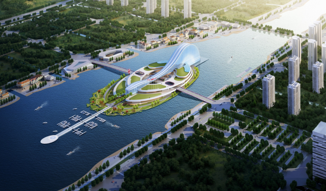 建筑、島嶼、橋梁空間互通,有機共融,打造地標性島嶼建筑,助力構建天沐河旅游休閑帶。