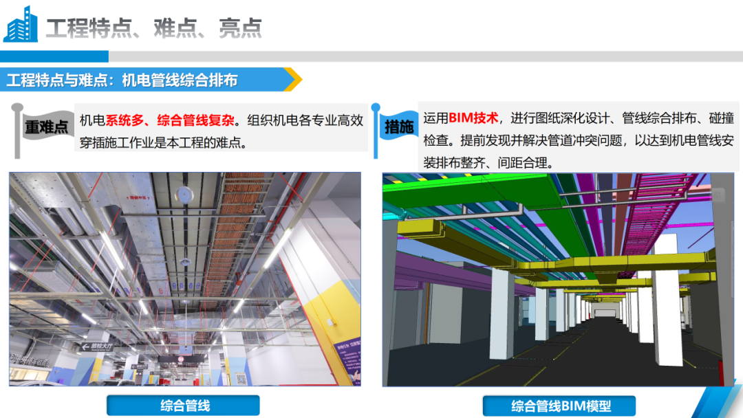 本次獲得“2023-2024年度中國安裝工程優(yōu)質(zhì)獎(jiǎng)(中國安裝之星)”關(guān)鍵點(diǎn)在于,橫琴口岸及綜合交通樞紐工程由A區(qū)B區(qū)、C區(qū)主體建筑及南北側(cè)交通平臺組成,機(jī)電施工內(nèi)容包括建筑給排水及采暖、通風(fēng)與空調(diào)、建筑電氣三個(gè)分部工程。作為一個(gè)大體量機(jī)電工程,項(xiàng)目機(jī)電系統(tǒng)多、綜合管線復(fù)雜。在項(xiàng)目建設(shè)過程中,承建團(tuán)隊(duì)運(yùn)用BIM技術(shù),對圖紙進(jìn)行深化設(shè)計(jì)、對管線綜合排布并進(jìn)行碰撞檢查,提前發(fā)現(xiàn)并解決管道沖突問題,以達(dá)到機(jī)電管線安裝排布整齊、間距合理,確保了本次順利“摘星”。
