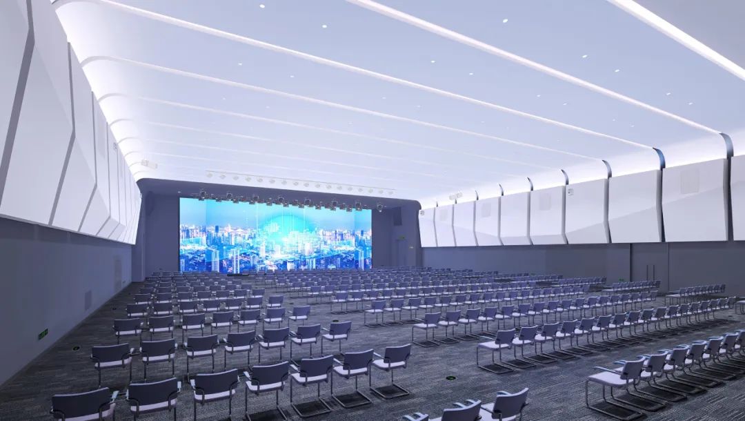 創(chuàng)新中心如山巒般扎根大地,約2萬平方米的15層空間內(nèi),實(shí)驗(yàn)室集群與共享辦公區(qū)交織;科技交流中心則似懸浮的寶石——?jiǎng)討B(tài)金屬遮陽面紗包裹著近萬平方米的會(huì)議空間,其898平方米無柱宴會(huì)廳與468座階梯報(bào)告廳,成為珠江西岸規(guī)模最大的技術(shù)路演平臺(tái)。當(dāng)車輛經(jīng)廣珠西線駛?cè)霗M琴,這座折射天光的建筑將成為人們對(duì)橫琴科學(xué)城的第一印象。