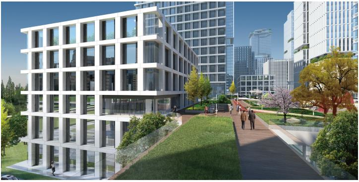 在研發(fā)辦公板塊,22棟建筑被精準(zhǔn)劃分為三種生命體量。180米超高層A塔以首層5.5米挑高,迎接企業(yè)總部入駐;50-100米高層B塔為成長(zhǎng)型科技企業(yè)定制4.5米層高與VIP洗手間(帶淋浴);24米獨(dú)棟C塔一、二層預(yù)留可拆卸樓板,打通后層高可達(dá)10米,首層最大荷載可達(dá)1200-1500kg/㎡,滿足生物醫(yī)藥企業(yè)的重型設(shè)備需求。