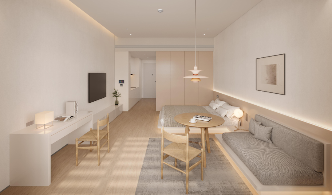人文關(guān)懷時(shí)刻滲透生活場(chǎng)景。員工宿舍中,33-47平方米單間占比近90%,首層共享廚房飄散著家常煙火;專家公寓21%為一房以上戶型,引入酒店式保潔與健身服務(wù);四組分散式食堂與900平方米宴會(huì)廳通過地下廚房聯(lián)動(dòng),既能滿足日常餐飲,亦可瞬時(shí)承接千人國(guó)際會(huì)議。在這里,每一寸混凝土都承載著創(chuàng)新的重量,每一扇落地窗都映照著產(chǎn)業(yè)的未來。——這是珠光集團(tuán)對(duì)創(chuàng)新生態(tài)的溫暖承諾。