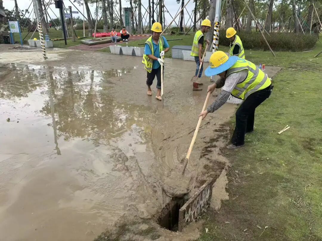 珠光集團(tuán)組織500多人次投入到橫琴星樂(lè)度·露營(yíng)小鎮(zhèn)、花海長(zhǎng)廊、濕地公園、星享·天沐酒店、南油大酒店、人才公寓等旗下文旅項(xiàng)目的復(fù)工復(fù)產(chǎn)工作,目前已高效完成園區(qū)道路清障任務(wù),全面恢復(fù)所有電力系統(tǒng),修繕園區(qū)導(dǎo)視牌、(高空)廣告牌,對(duì)帳篷頂部損毀區(qū)域進(jìn)行安全圍蔽;基本完成人才公寓受損住戶的室內(nèi)設(shè)施維修工作,有序安置受影響的住戶;加快完成花海長(zhǎng)廊3、5號(hào)驛站廣場(chǎng)因海水倒灌造成的淤泥與垃圾清運(yùn),以及賽艇公園大面積倒伏樹(shù)木扶正復(fù)原工作。