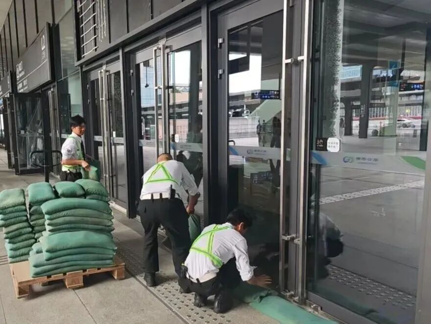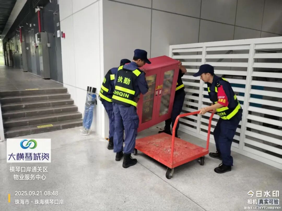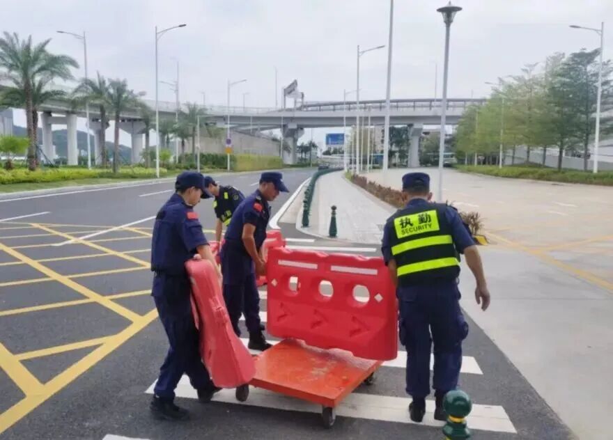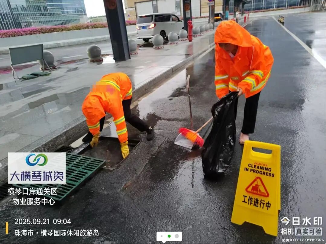 在橫琴口岸區(qū)域,提前排查200多個(gè)集水井,調(diào)集230個(gè)緊固件加固門窗,近3000條沙袋、近100個(gè)防洪擋板、11臺(tái)水泵等應(yīng)對(duì)福臨道、地庫36處接駁口、負(fù)二層下沉庭院、U行車道等重點(diǎn)區(qū)域強(qiáng)排和封堵需要。同時(shí)對(duì)通關(guān)區(qū)域的100余扇玻璃門進(jìn)行加固,在易水浸區(qū)域放置沙袋、擋板。同時(shí),全面清理雨水井、排水溝渠,確保排水暢通。